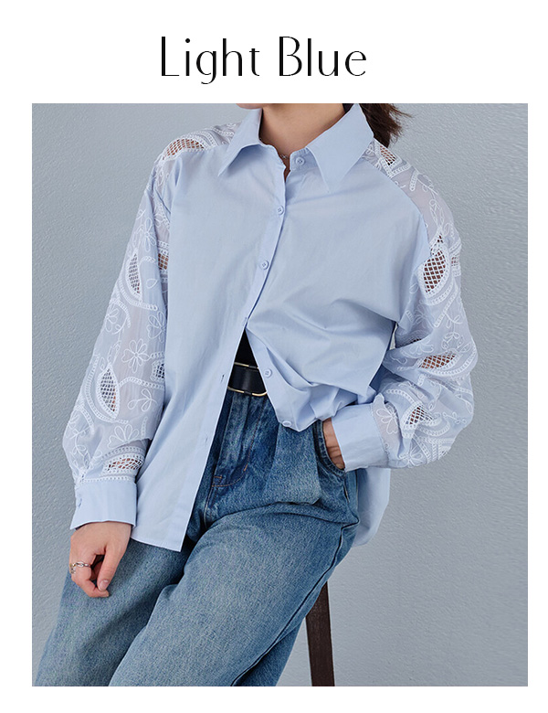 透かしレーススリーブブラウス